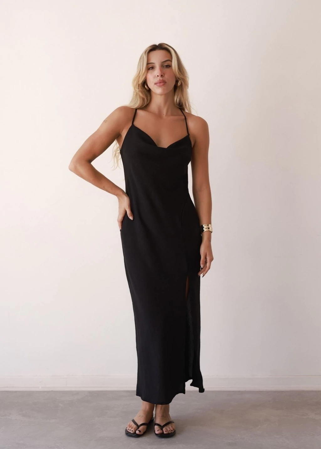 O VESTIDO MÔNACO DEGAGÊ LONGO é um modelo desenvolvido especialmente para você que adora conforto e um toque fashionista. A peça conta com uma modelagem frente única, em crepe (forrado) e alças finas que confere delicadeza a sua produção. Detalhe de decote degagê, super elegante!